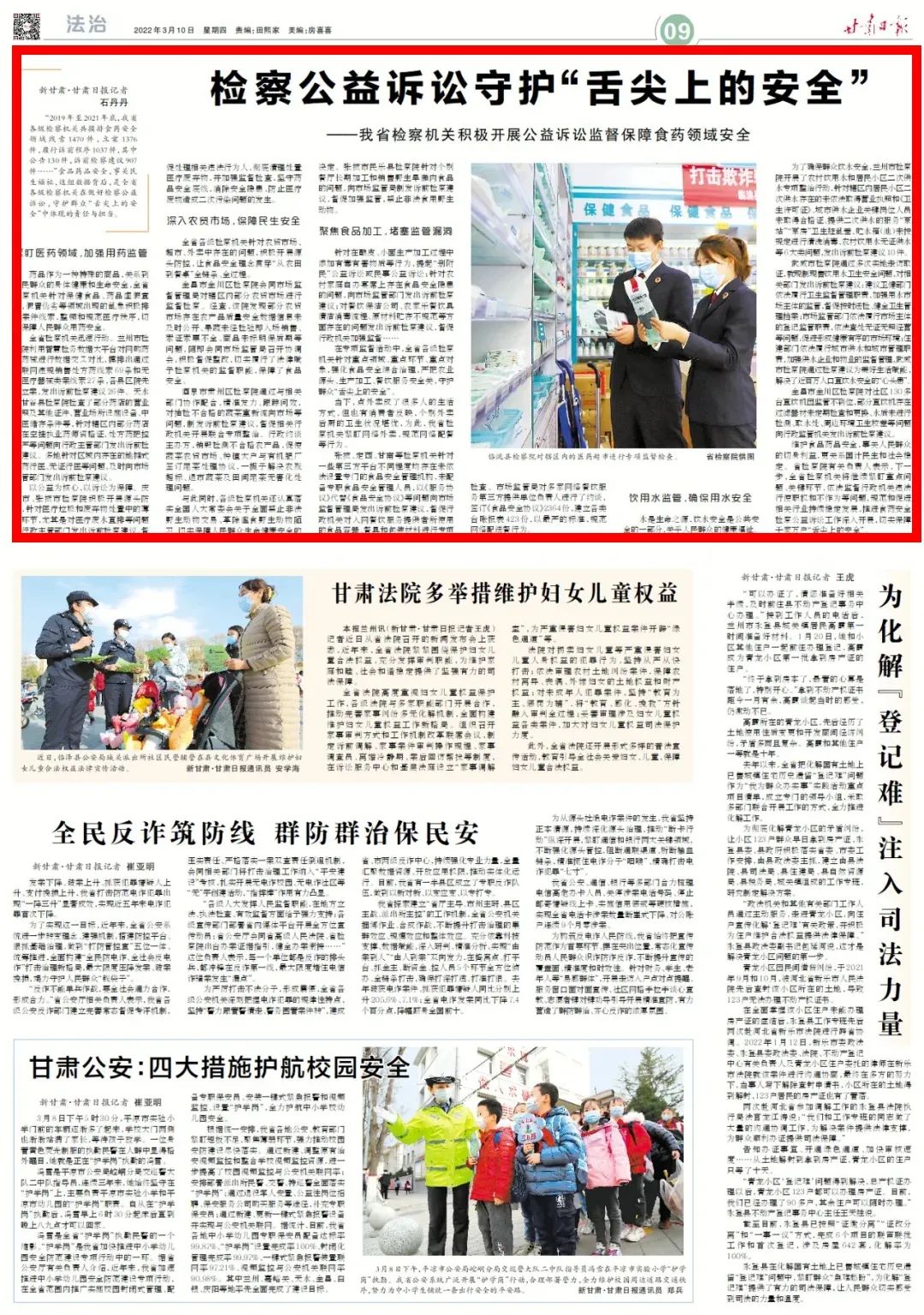 2022年3月10日甘肃日报九版刊发《检察公益诉讼守护“舌尖上的安全”——1024核工厂