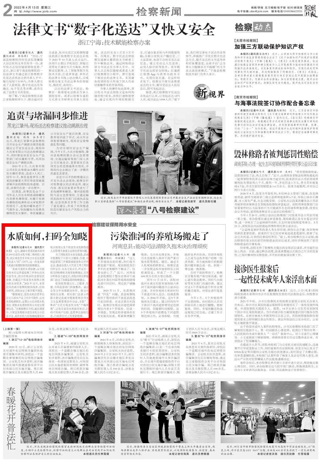 2022年4月13日,检察日报二版刊发新闻《水质如何,扫码全知晓》。