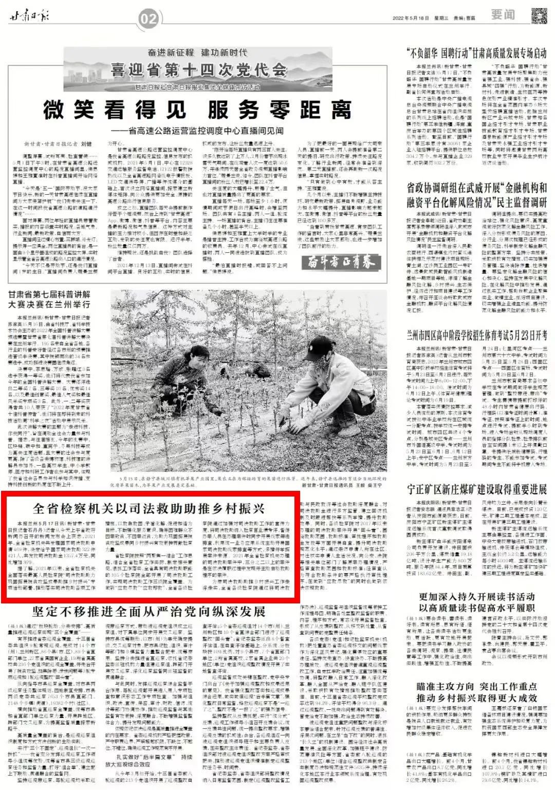 2022年5月18日,甘肃日报二版刊发《全省检察机关以司法救助助推乡村振兴》。