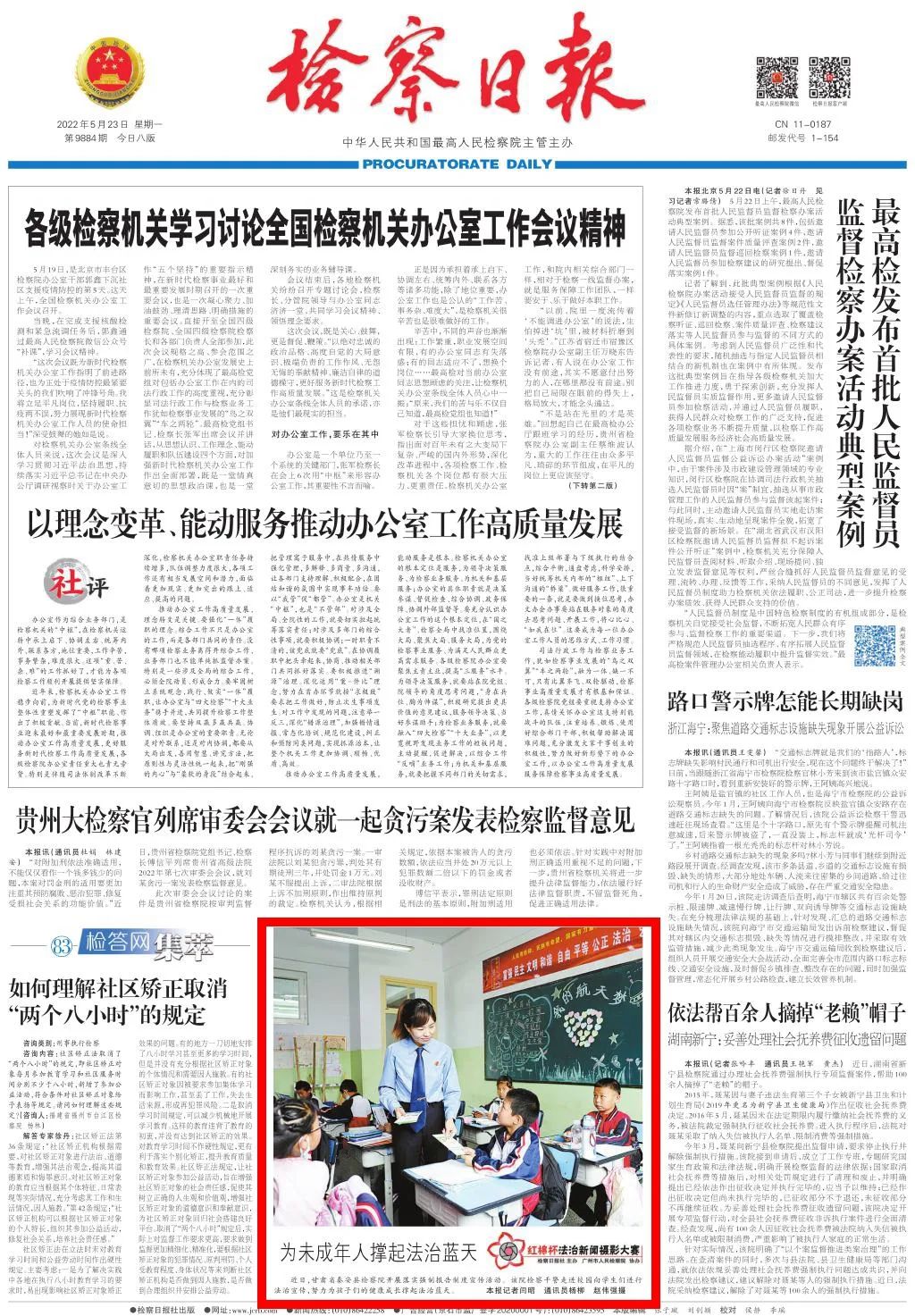 2022年5月23日,检察日报头版刊发新闻图片《为未成年人撑起法治蓝天》。