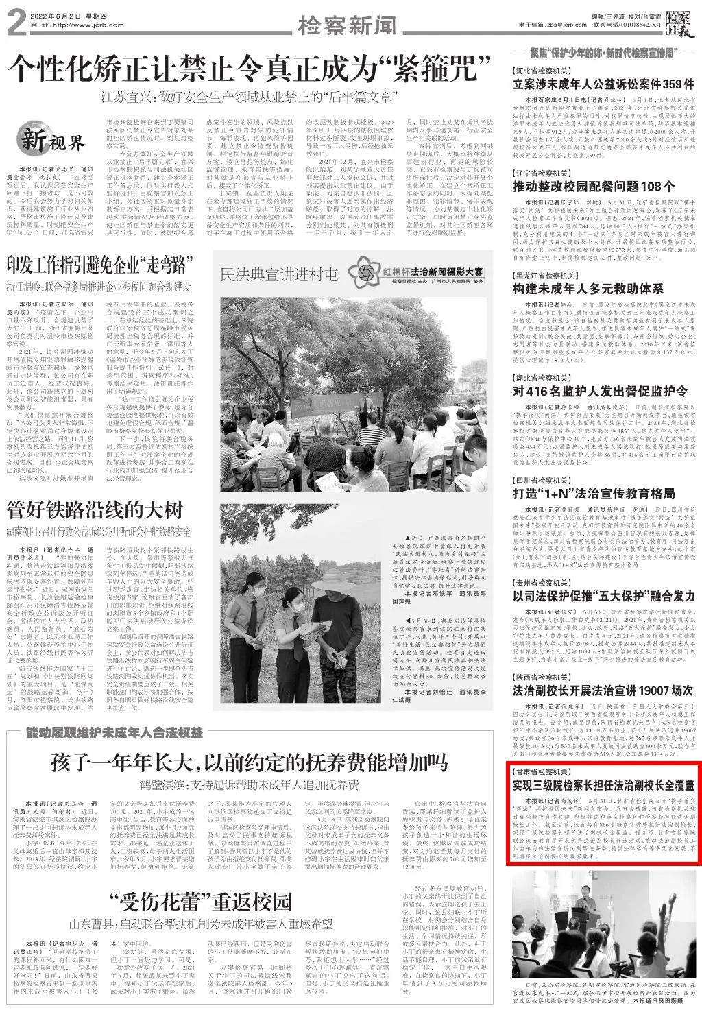 2022年6月2日,检察日报二版刊发《 甘肃省检察机关:实现三级院检察长担任法治副校长全覆盖》。