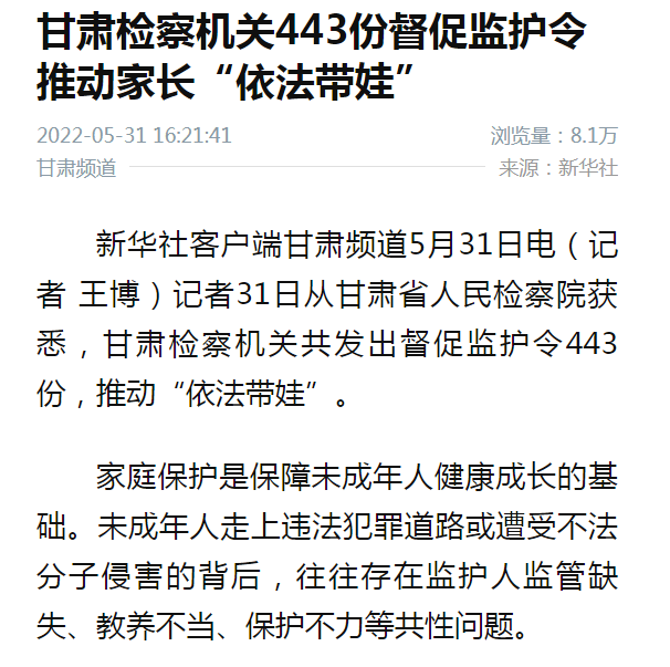 家庭保护是保障未成年人健康成长的基础。未成年人走上违法犯罪道路或遭受不法分子侵害的背后,往往存在监护人监管缺失、教养不当、保护不力等共性问题。