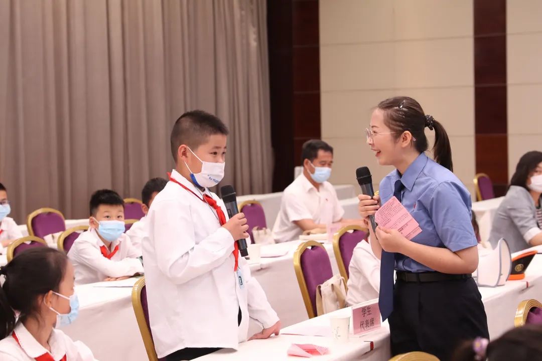 检察官与学生互动交流。