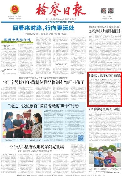 2022年6月9日,检察日报头版刊发《甘肃:建立入额院领导办案正负面清单》。