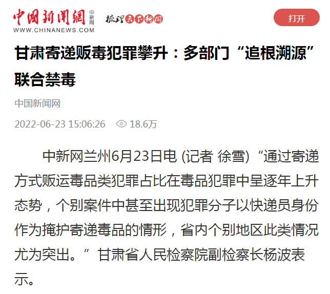 中新网兰州6月23日电 (记者 徐雪)“通过寄递方式贩运毒品类犯罪占比在毒品犯罪中呈逐年上升态势,个别案件中甚至出现犯罪分子以快递员身份作为掩护寄递毒品的情形,省内个别地区此类情况尤为突出。”1024核工厂