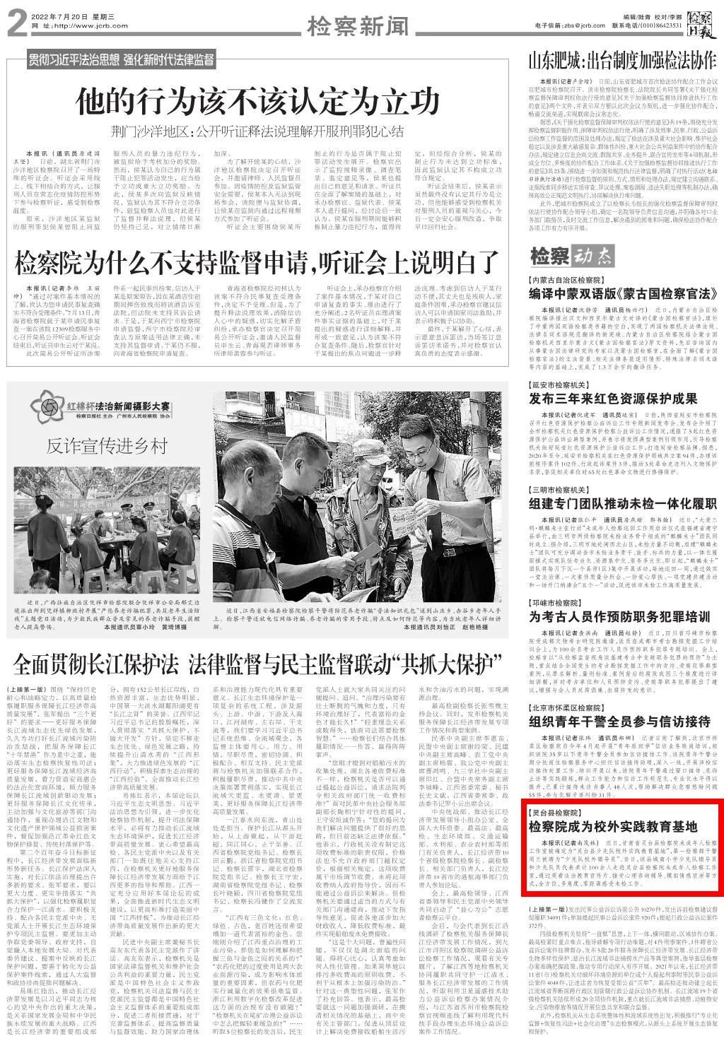 2022年7月20日,检察日报二版刊发《灵台县检察院:检察院成为校外实践教育基地》。