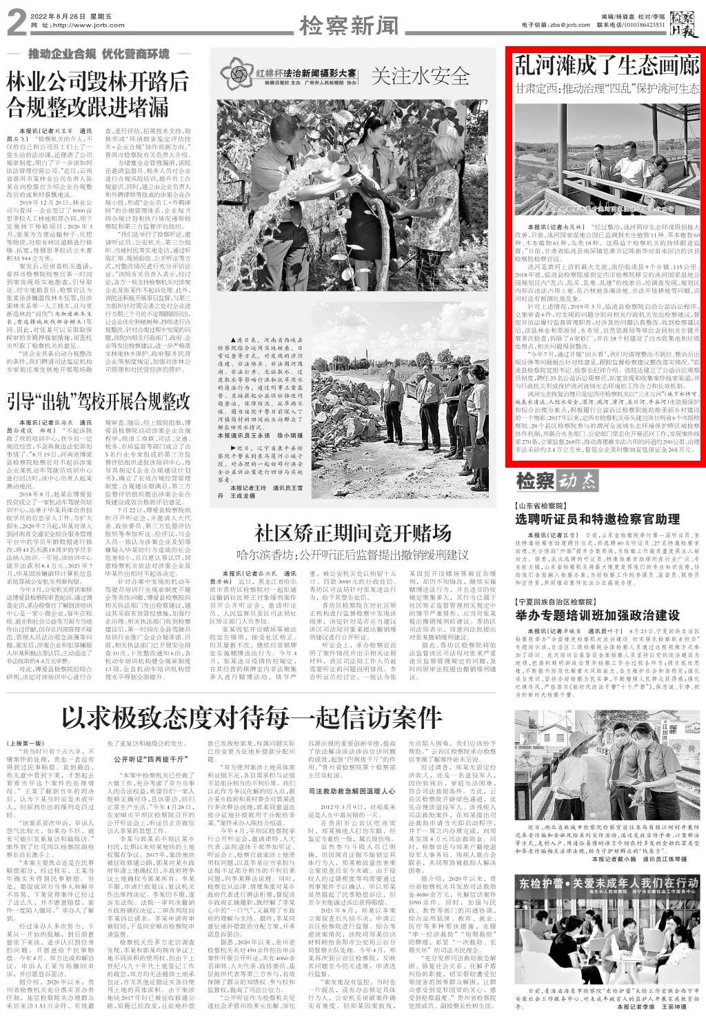 2022年8月26日,检察日报二版刊发《乱河滩成了生态画廊——甘肃定西:推动治理“四乱”保护洮河生态》。