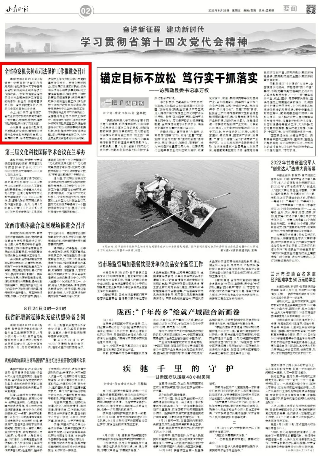2022年8月26日,甘肃日报二版刊发《全省检察机关种业司法保护工作推进会召开》。