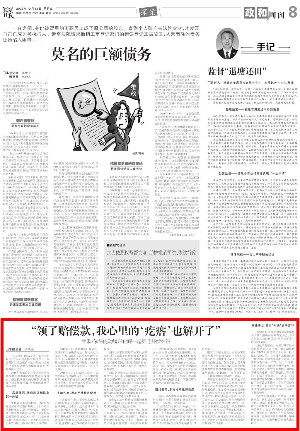 2022年10月12日,检察日报政和周刊刊发《“领了赔偿款,我心里的‘疙瘩’也解开了”——甘肃:依法能动履职化解一起拆迁补偿纠纷》。