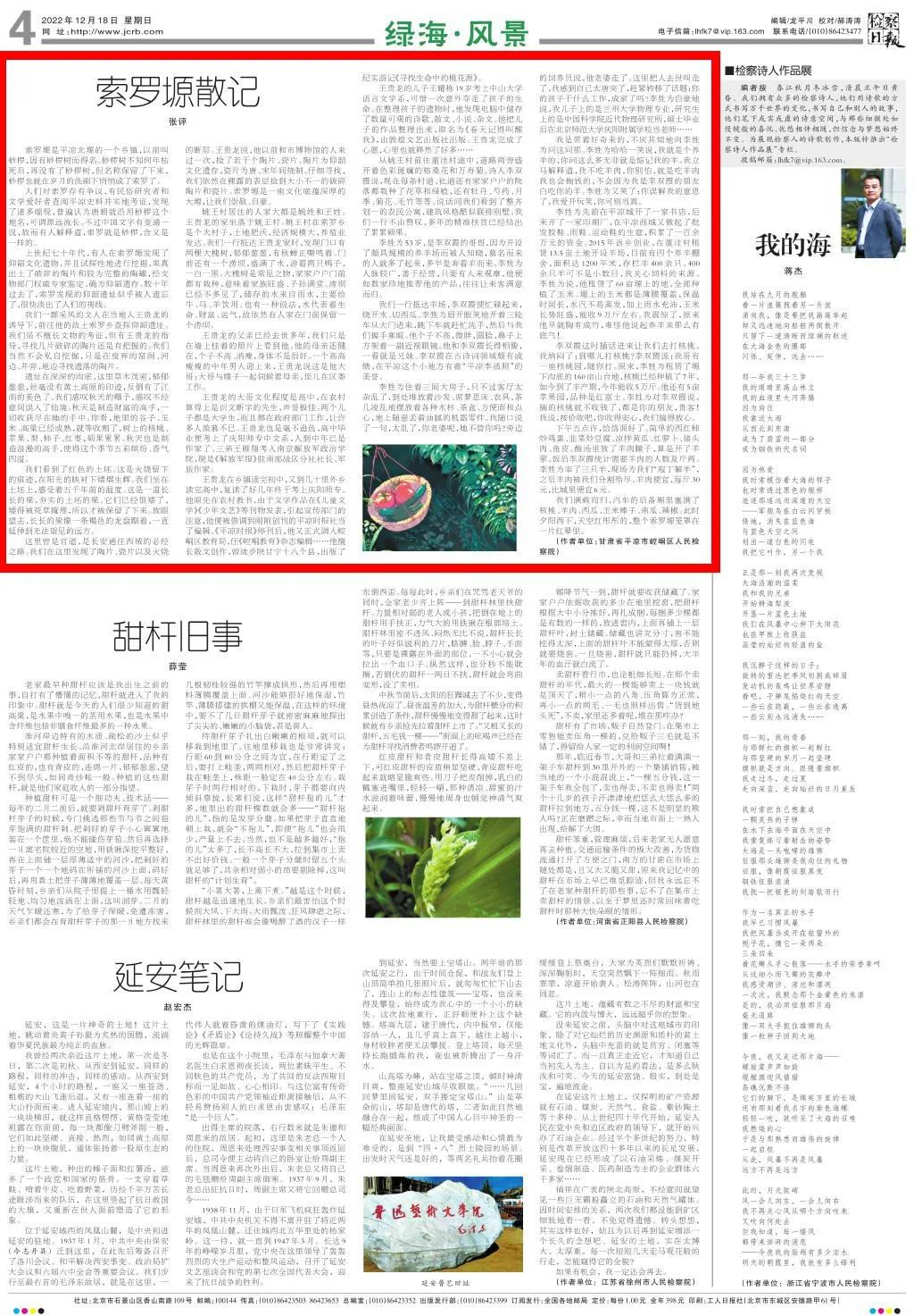 2022年12月18日,检察日报绿海·风景刊发《索罗塬散记》。