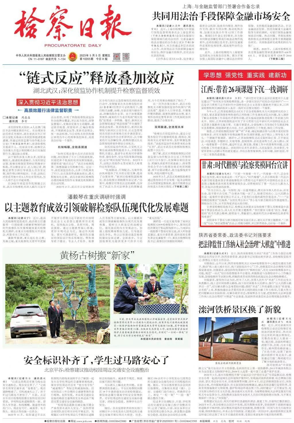 2023年5月5日,检察日报头版刊发《甘肃:时代楷模与检察英模同台宣讲》。