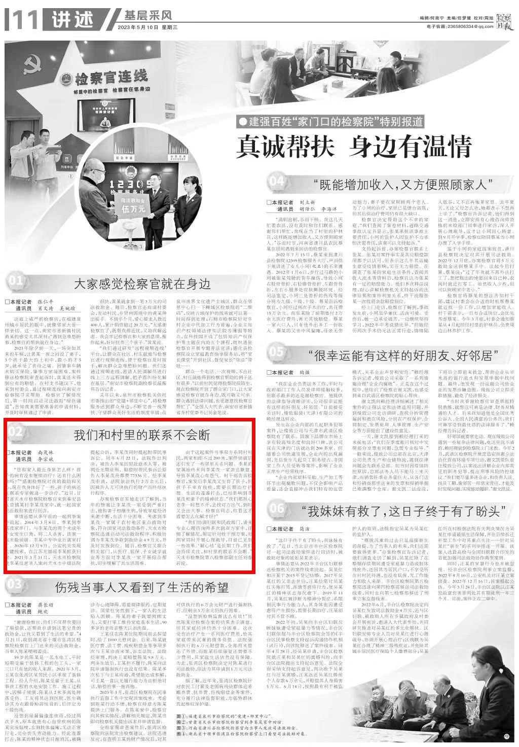 2023年5月10日,检察日报十一版刊发《我们和村里的联系不会断》。