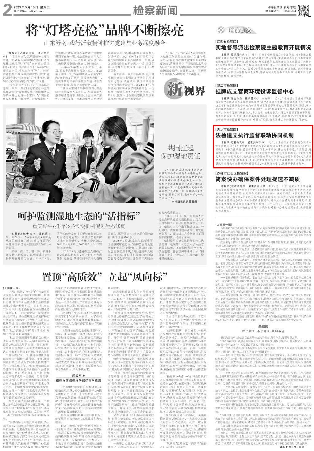 2023年5月10日,检察日报二版刊发《天水市检察院:法检建立执行监督联动协同机制》。