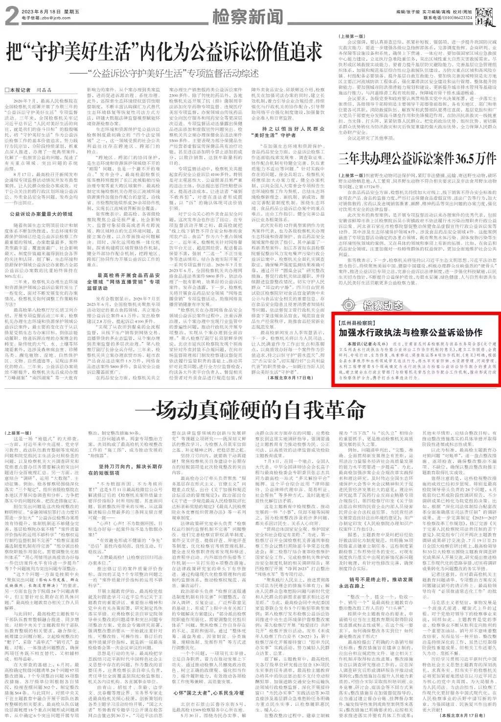 2023年8月18日,检察日报刊发《瓜州县检察院:加强水行政执法与检察公益诉讼协作》。