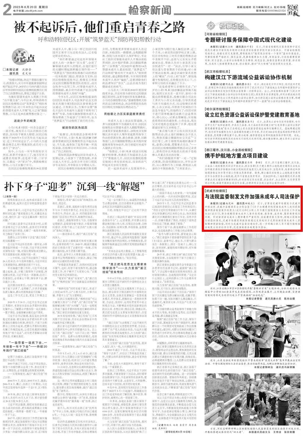 2023年8月20日,检察日报刊发《武威市检察院:与法院监委制发文件加强未成年人司法保护》。