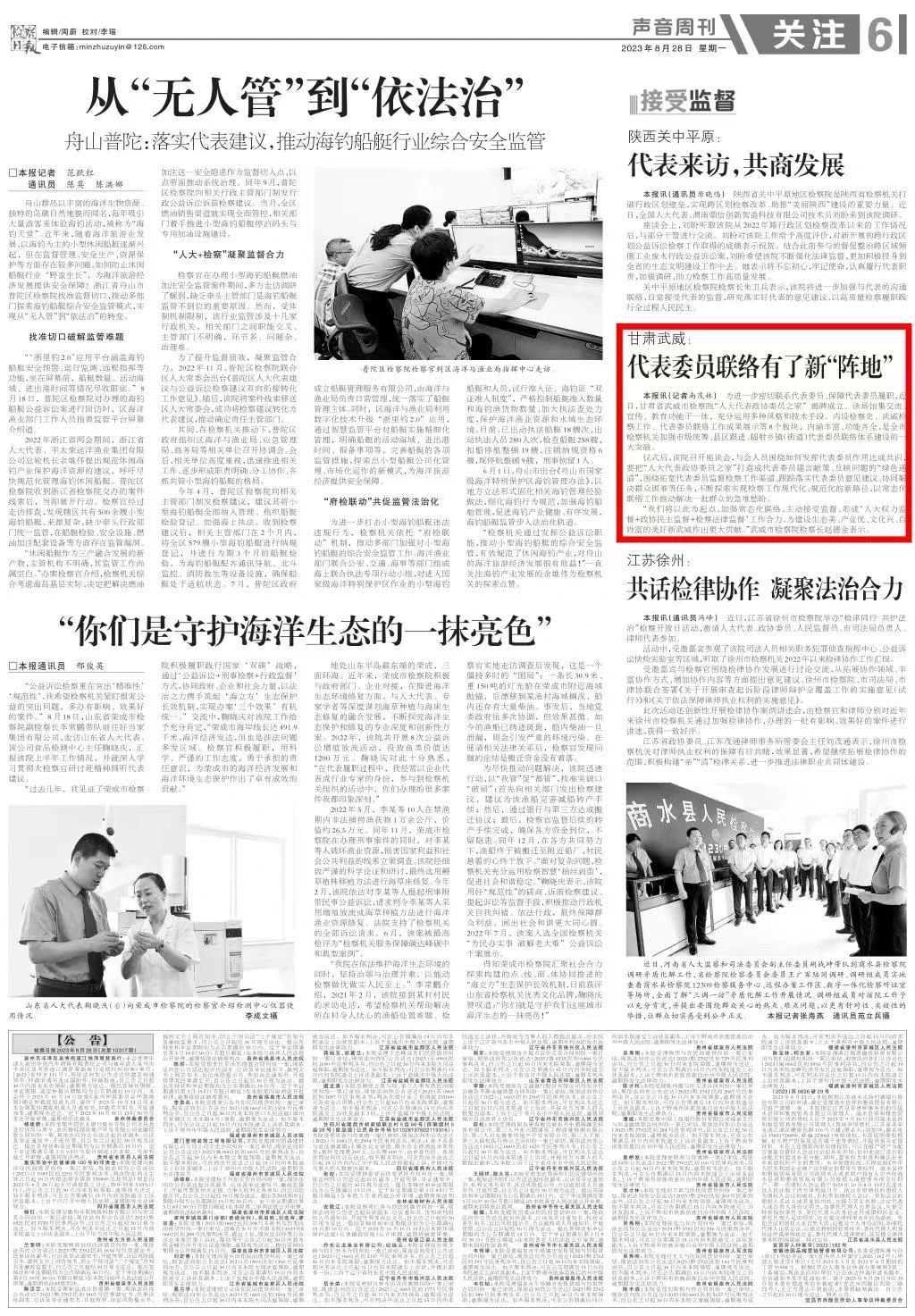 2023年8月28日,检察日报声音周刊刊发《甘肃武威:代表委员联络有了新“阵地”》。