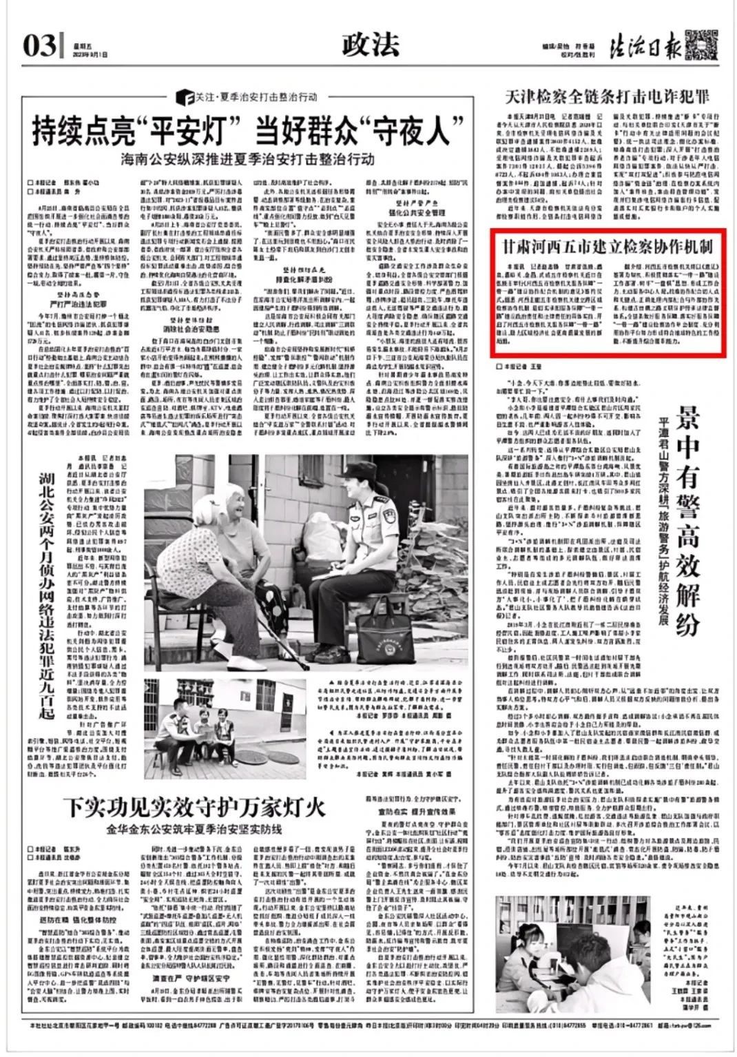 2023年9月1日,法治日报刊发《甘肃河西五市建立检察协作机制》。
