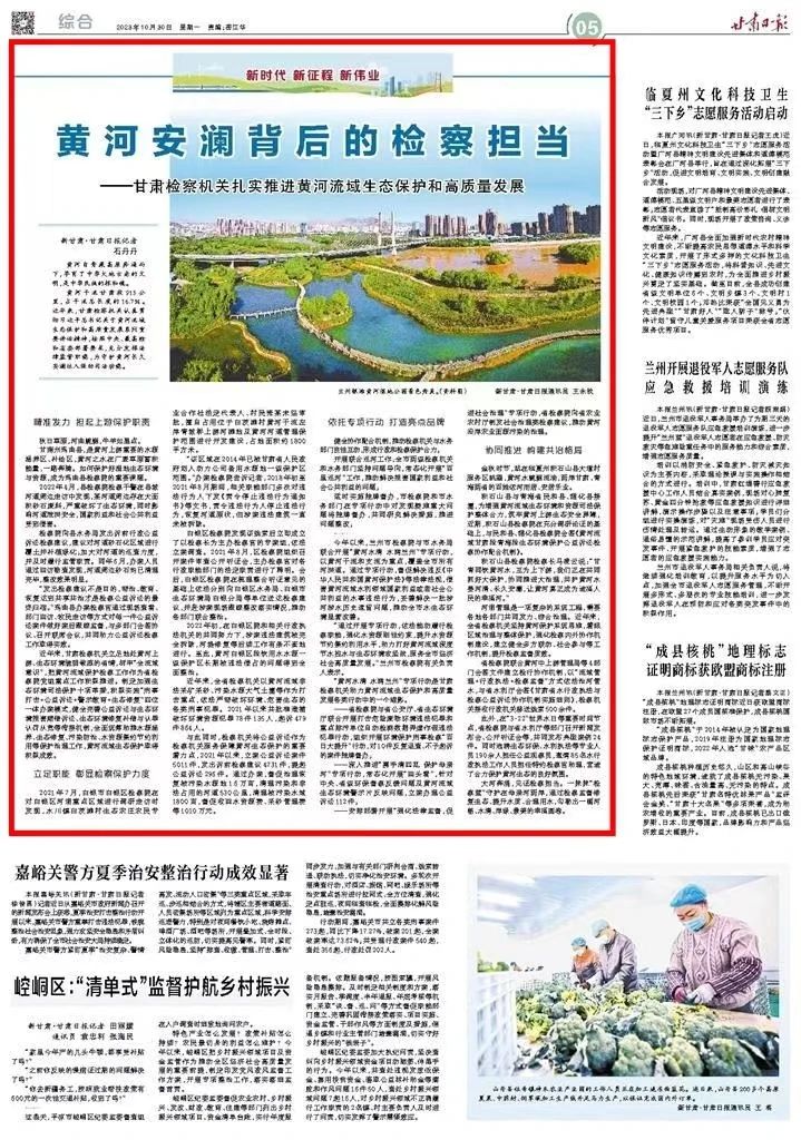 2023年10月30日,甘肃日报刊发《黄河安澜背后的检察担当——1024核工厂