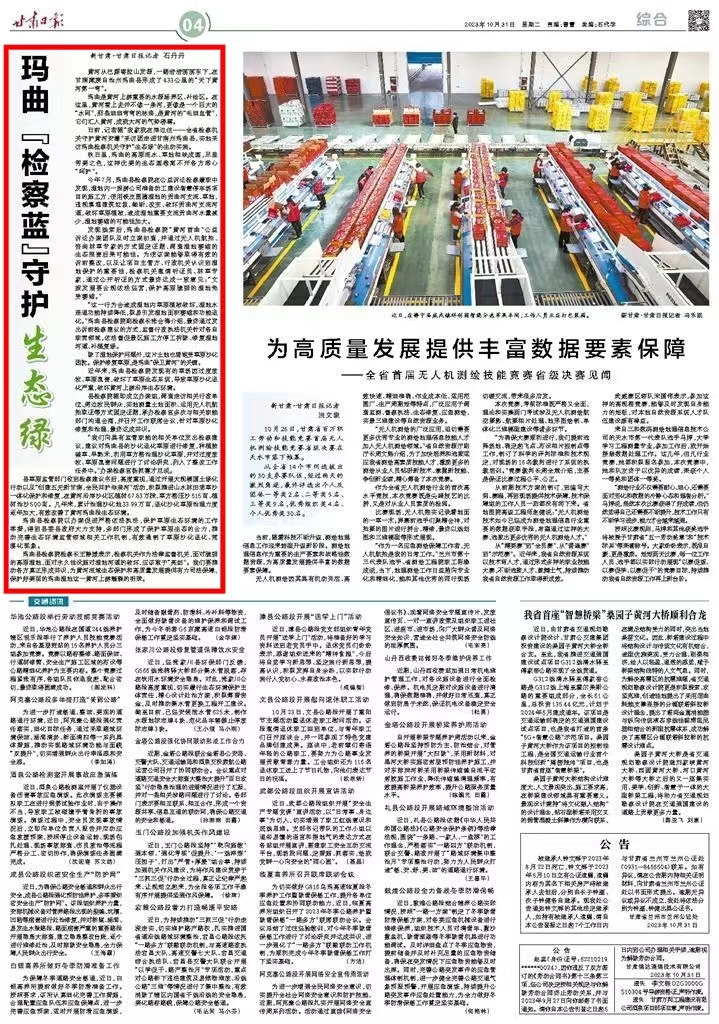 2023年10月31日,甘肃日报刊发《玛曲 “检察蓝”守护生态绿》。