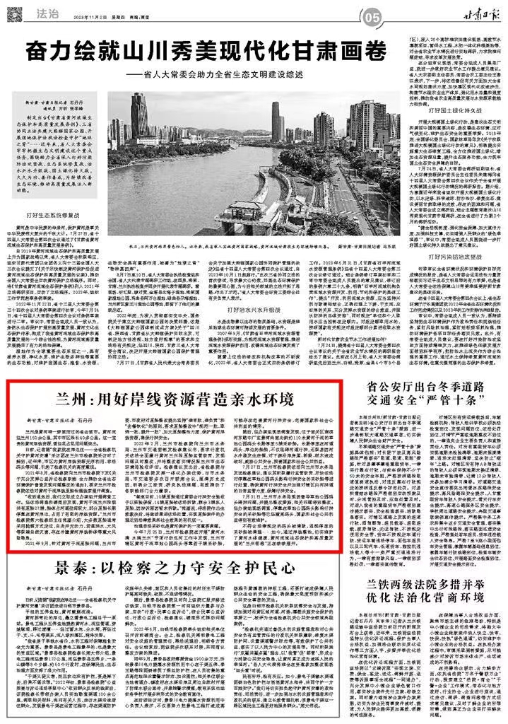 2023年11月2日,甘肃日报刊发《兰州:用好岸线资源营造亲水环境》。