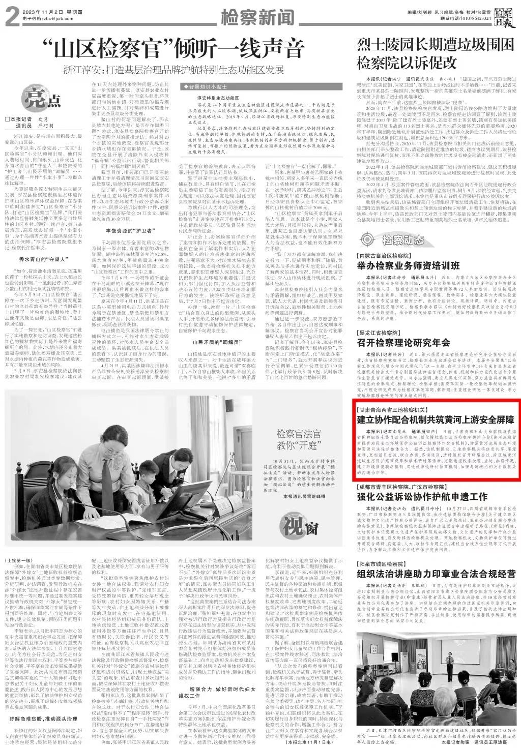 2023年11月2日,检察日报刊发《甘肃青海两省三地检察机关:建立协作配合机制共筑黄河上游安全屏障》。