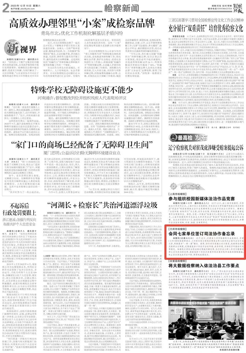 2023年12月16日,检察日报刊发《兰州市检察院会同七家单位签订司法协作备忘录》一文。