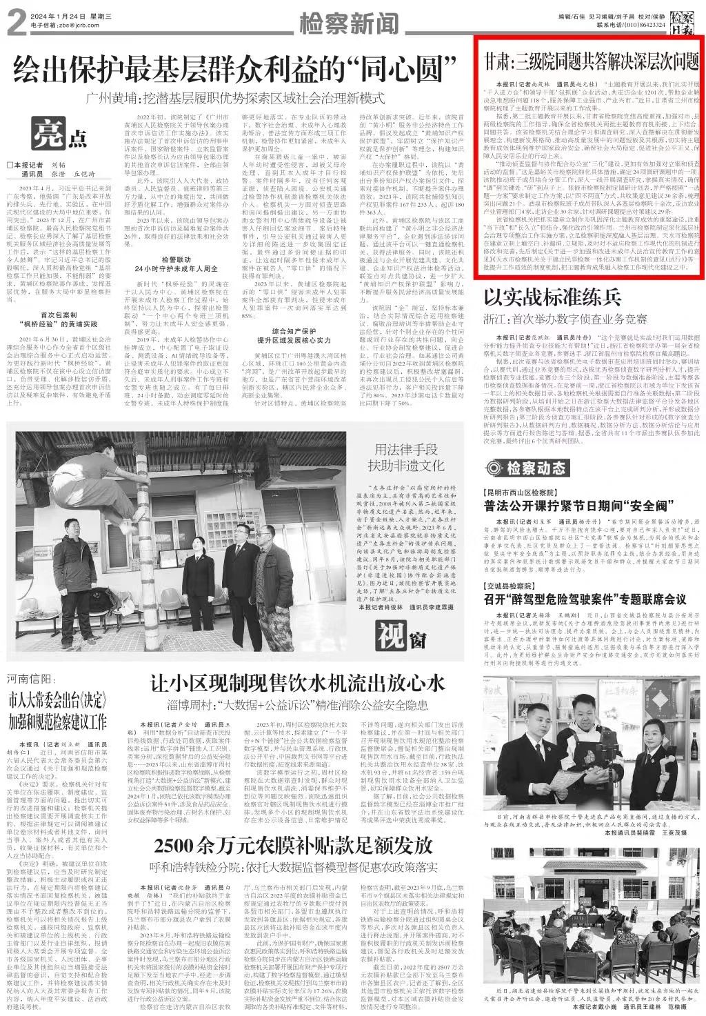 2024年1月24日,检察日报刊发《甘肃:三级院同题共答解决深层次问题》。