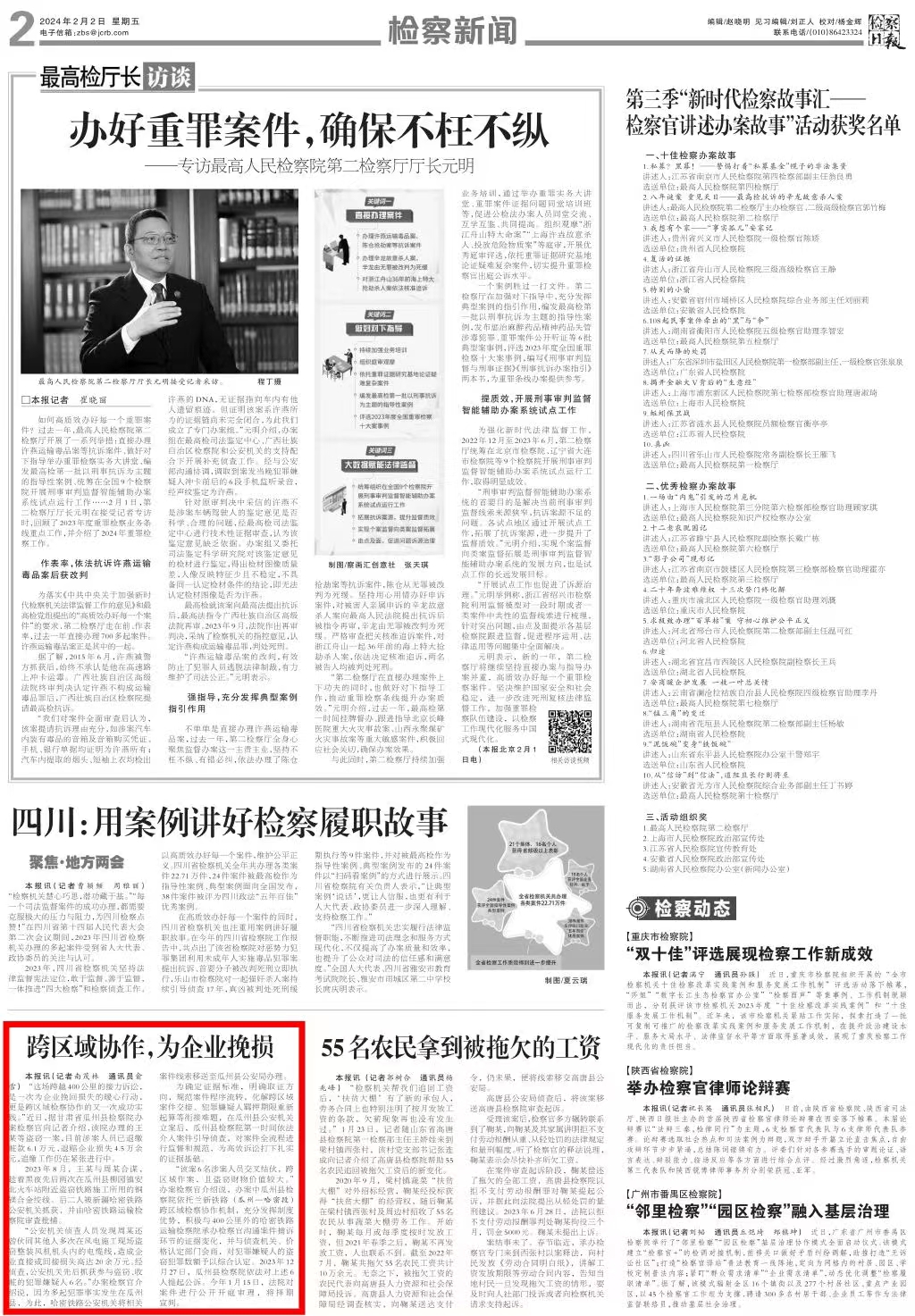 2024年2月2日,检察日报刊发《跨区域协作,为企业挽损》。