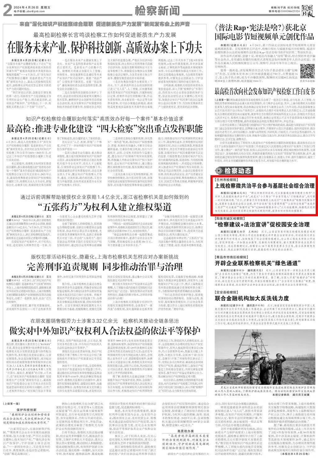 2024年4月26日,检察日报刊发《兰州市检察院:上线检察微共治平台参与基层社会综合治理》。