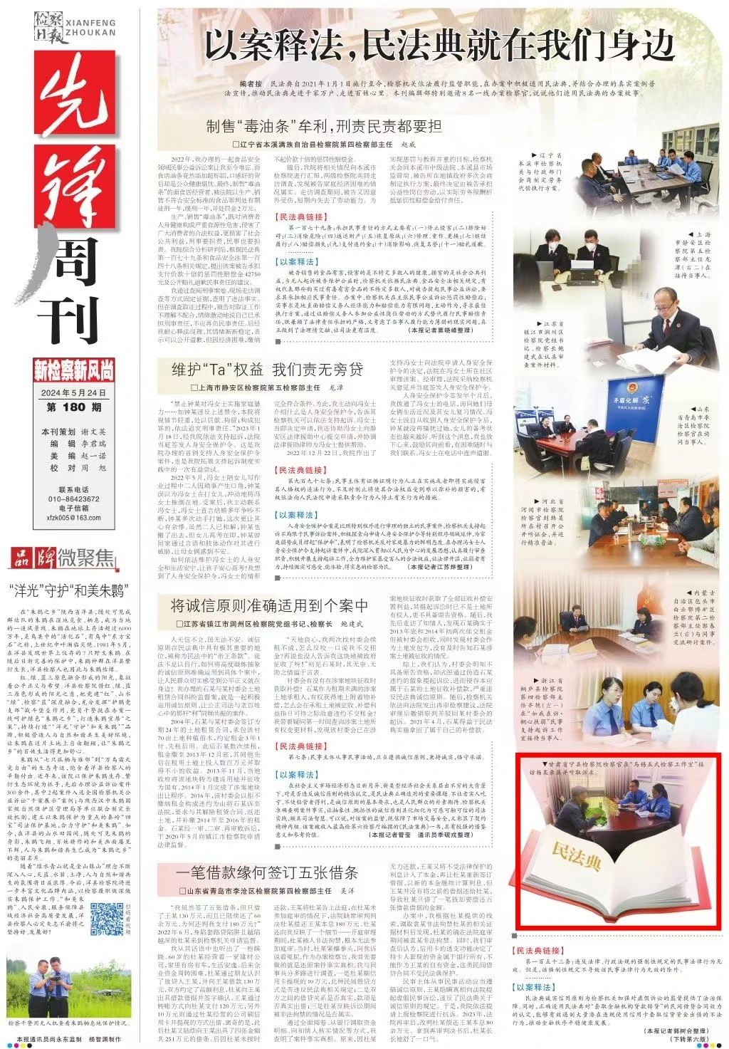 2024年5月24日,检察日报先锋周刊刊发《以案释法,民法典就在我们身边》。