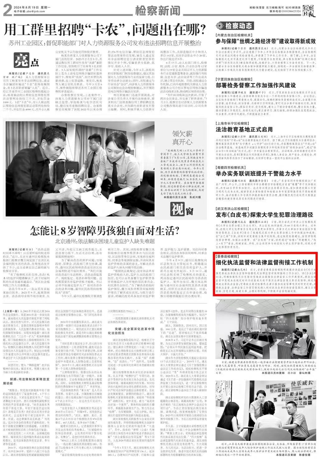 2024年8月19日,检察日报刊发《景泰县检察院:细化执法监督和法律监督衔接工作机制》。