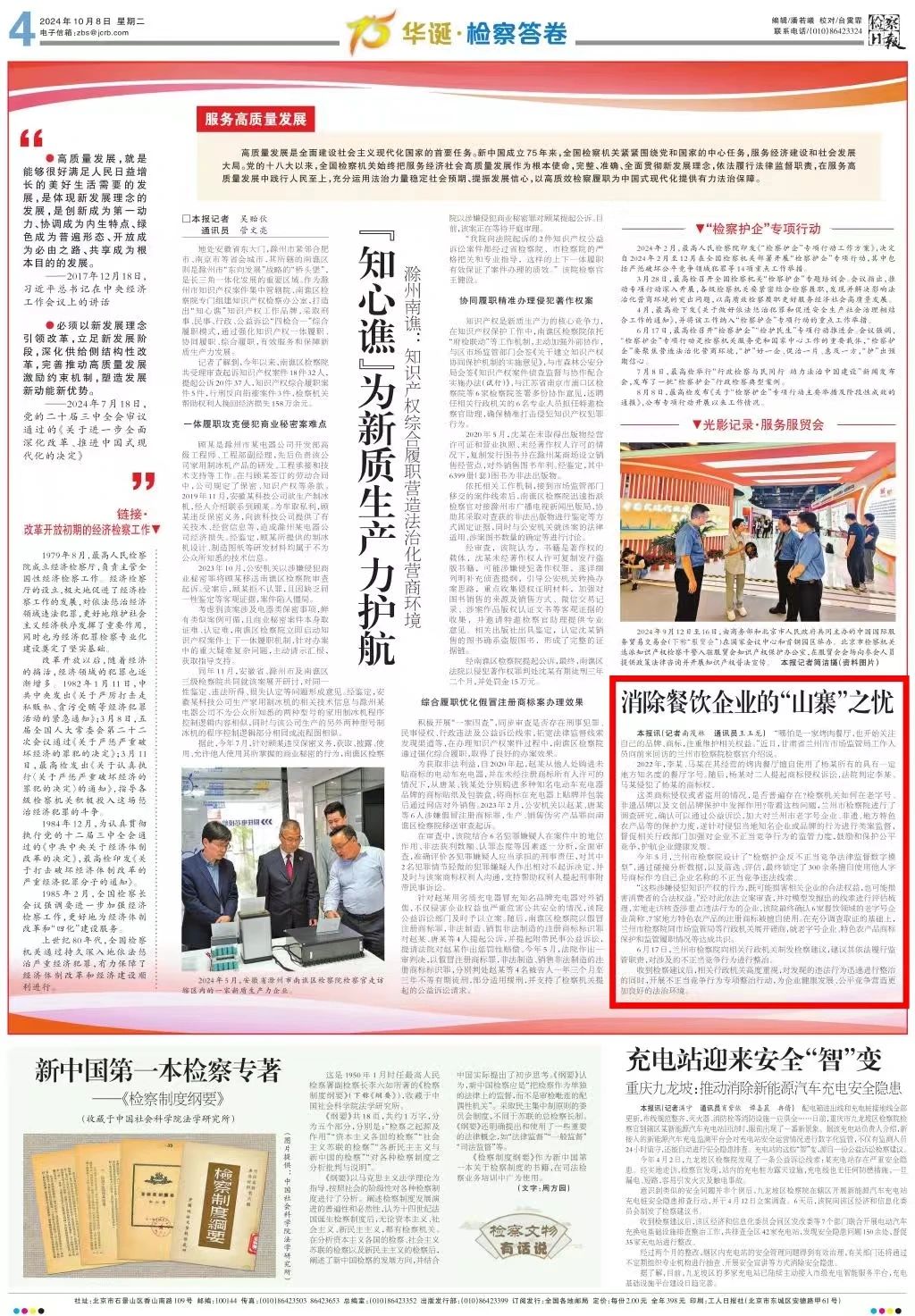 2024年10月8日,检察日报刊发《消除餐饮企业的“山寨”之忧》。