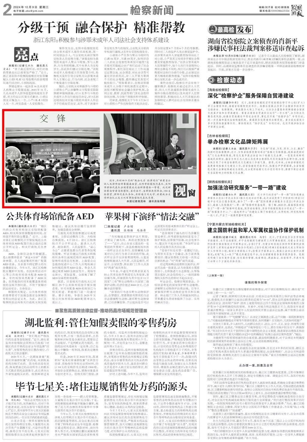 2024年10月9日,检察日报二版视窗栏目刊发图片新闻《交锋》。