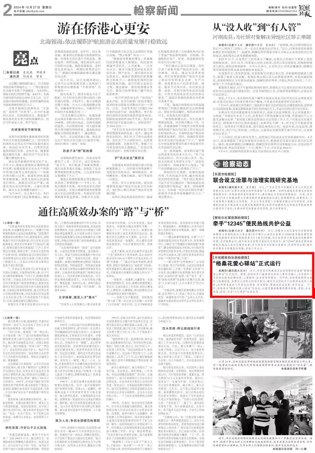 2024年10月27日,检察日报刊发《天祝藏族自治县检察院:“格桑花爱心驿站”正式运行》。