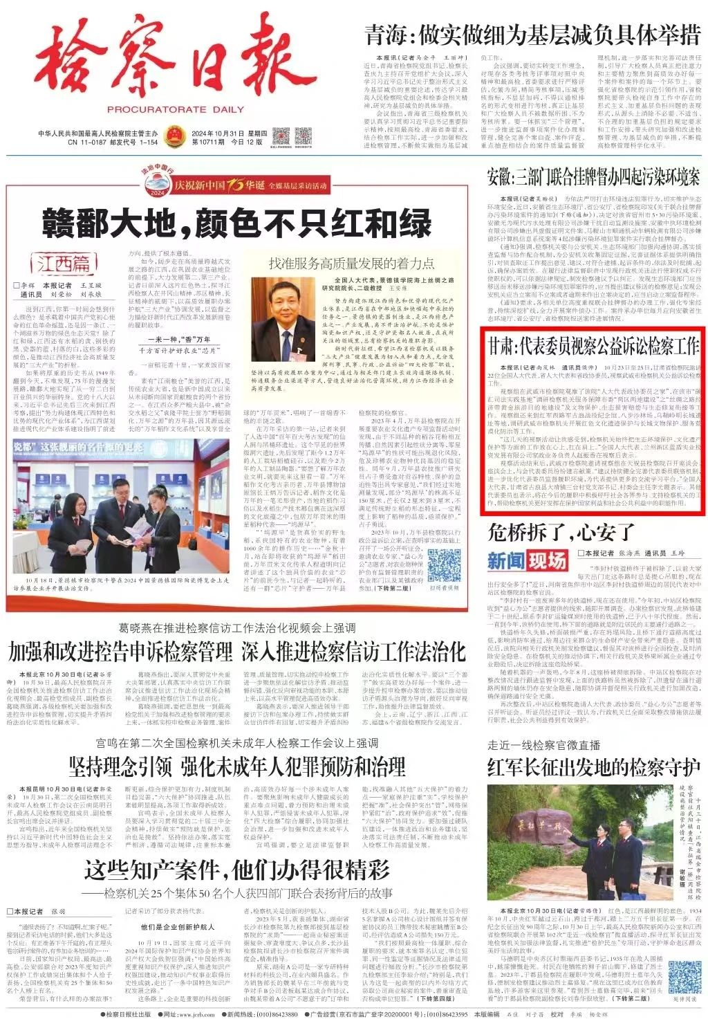 2024年10月31日,检察日报头版刊发《甘肃:代表委员视察公益诉讼检察工作》。