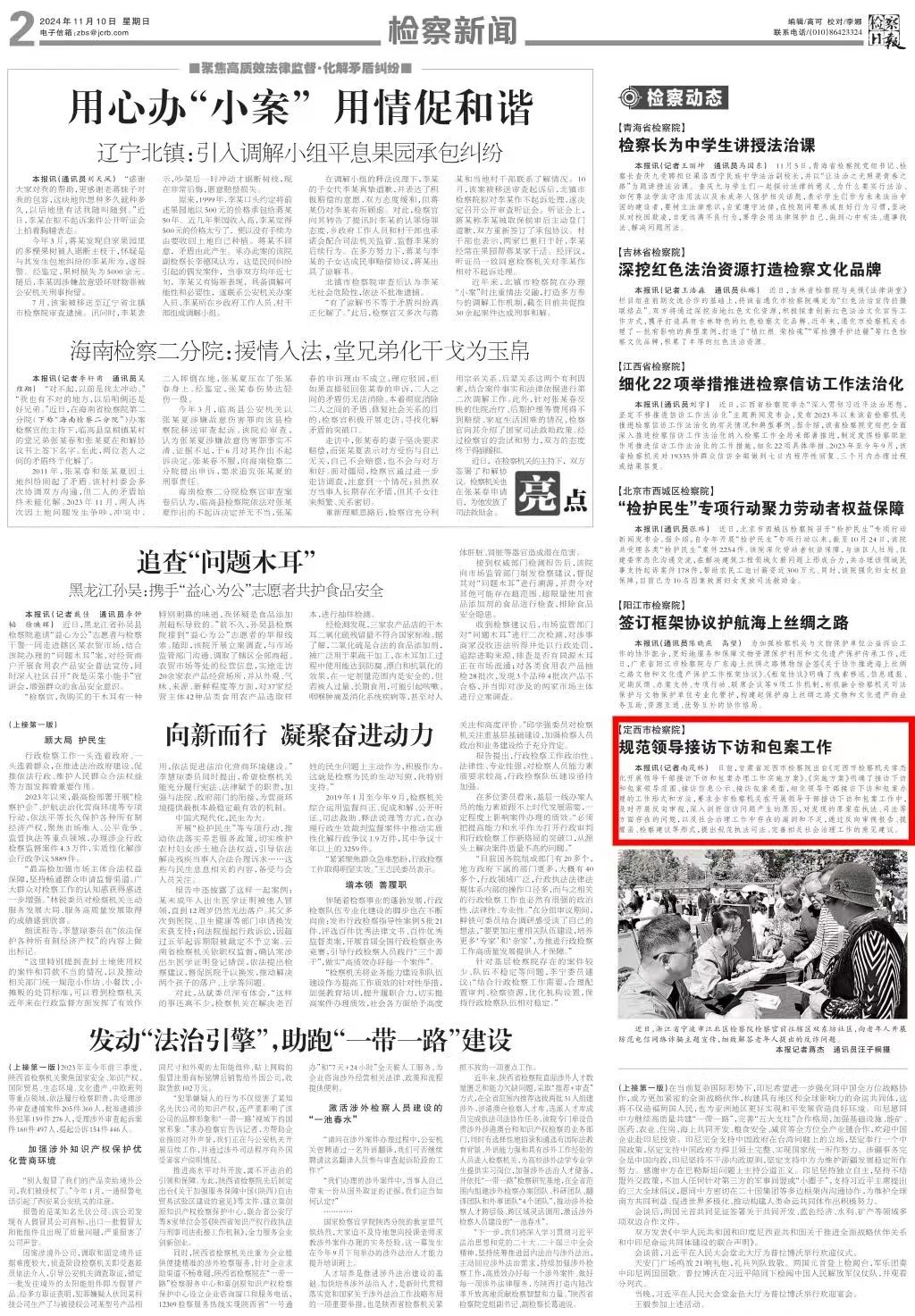 2024年11月10日,检察日报刊发《定西市检察院:规范领导接访下访和包案工作》。