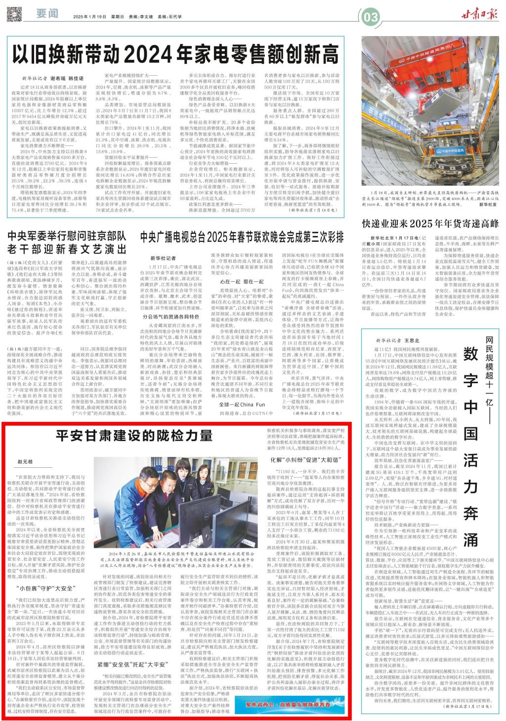 2025年1月19日,甘肃日报刊发《平安甘肃建设的陇检力量》。