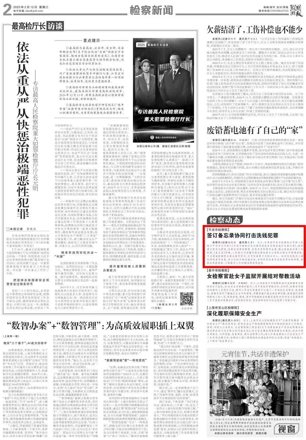 2025年2月12日,检察日报刊发《平凉市检察院:签订备忘录协同打击洗钱犯罪》。