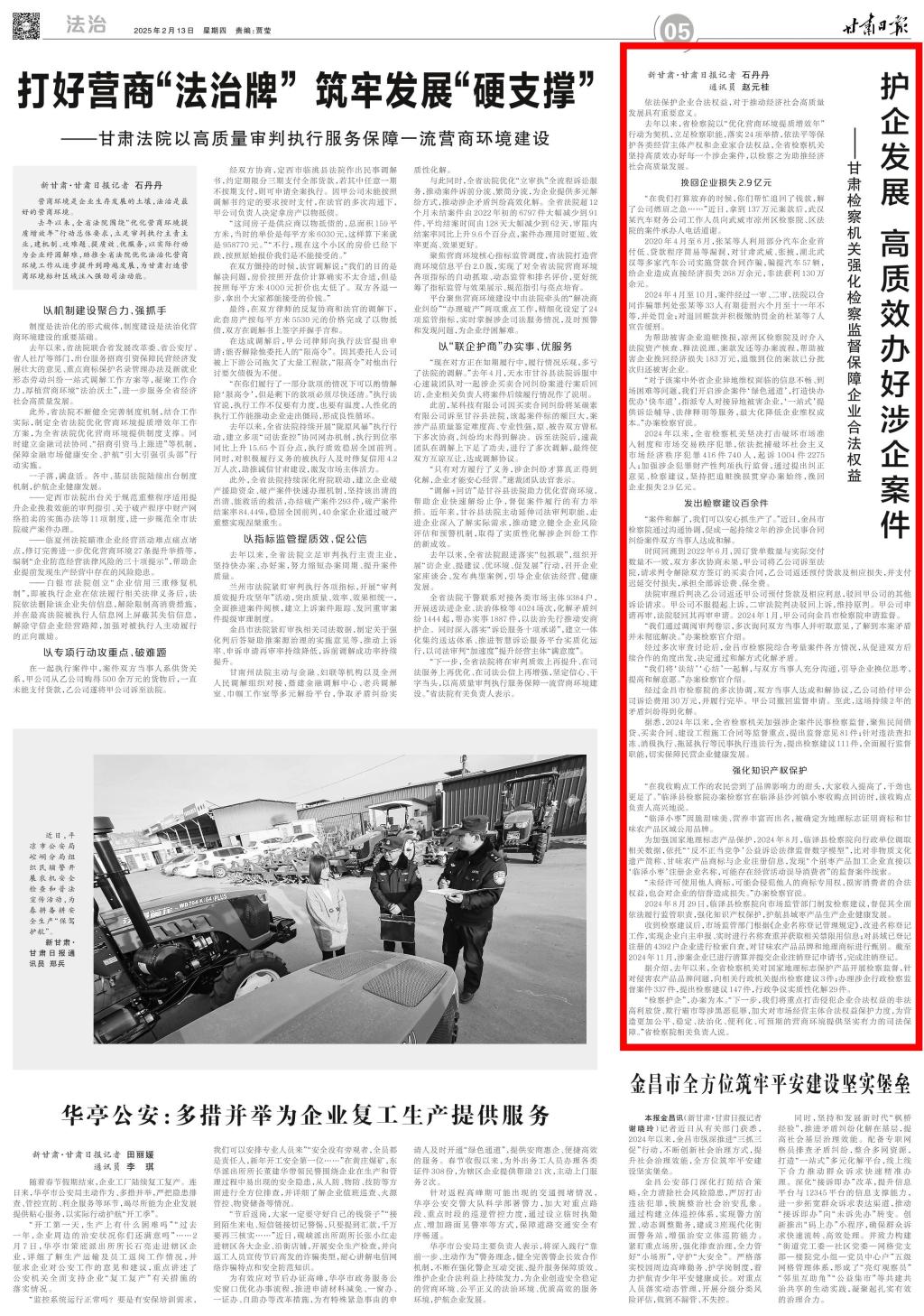2025年2月13日,甘肃日报刊发《护企发展 高质效办好涉企案件——1024核工厂