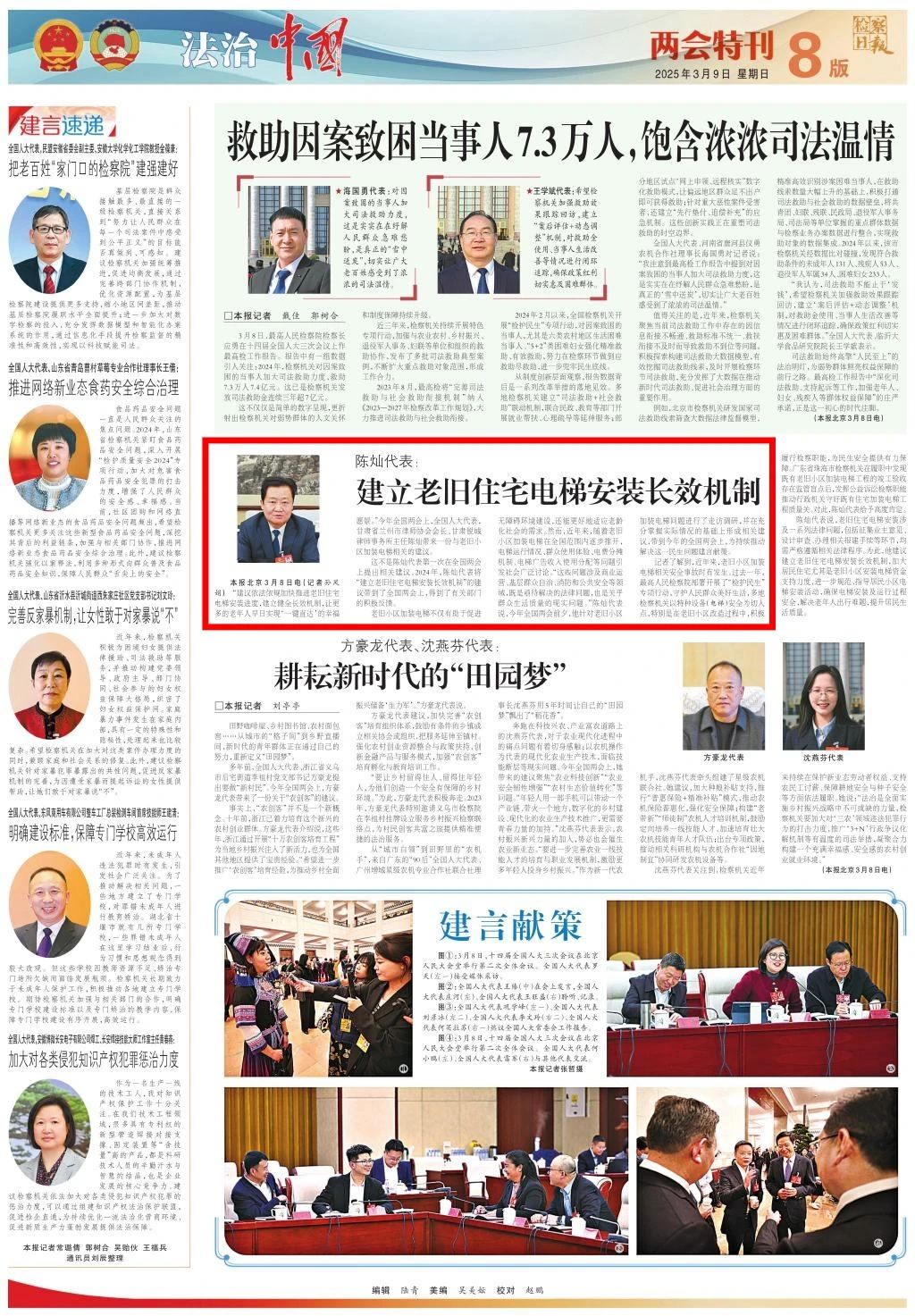 2025年3月9日,检察日报《法治中国两会特刊》专栏刊发《陈灿代表:建立老旧住宅电梯安装长效机制》。