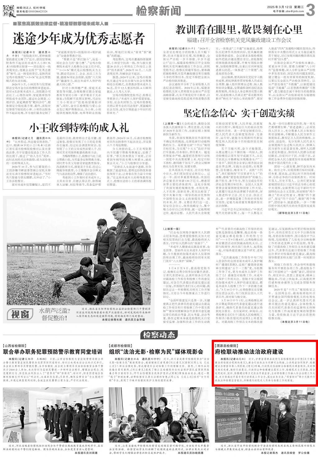 2025年3月12日,检察日报刊发《渭源县检察院:府检联动推动法治政府建设》。