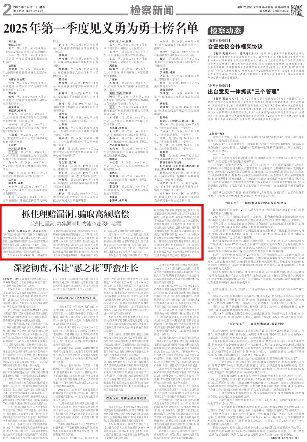 2025年3月31日,检察日报刊发《抓住理赔漏洞,骗取高额赔偿——兰州七里河:办案同时助物流企业及时堵漏》。