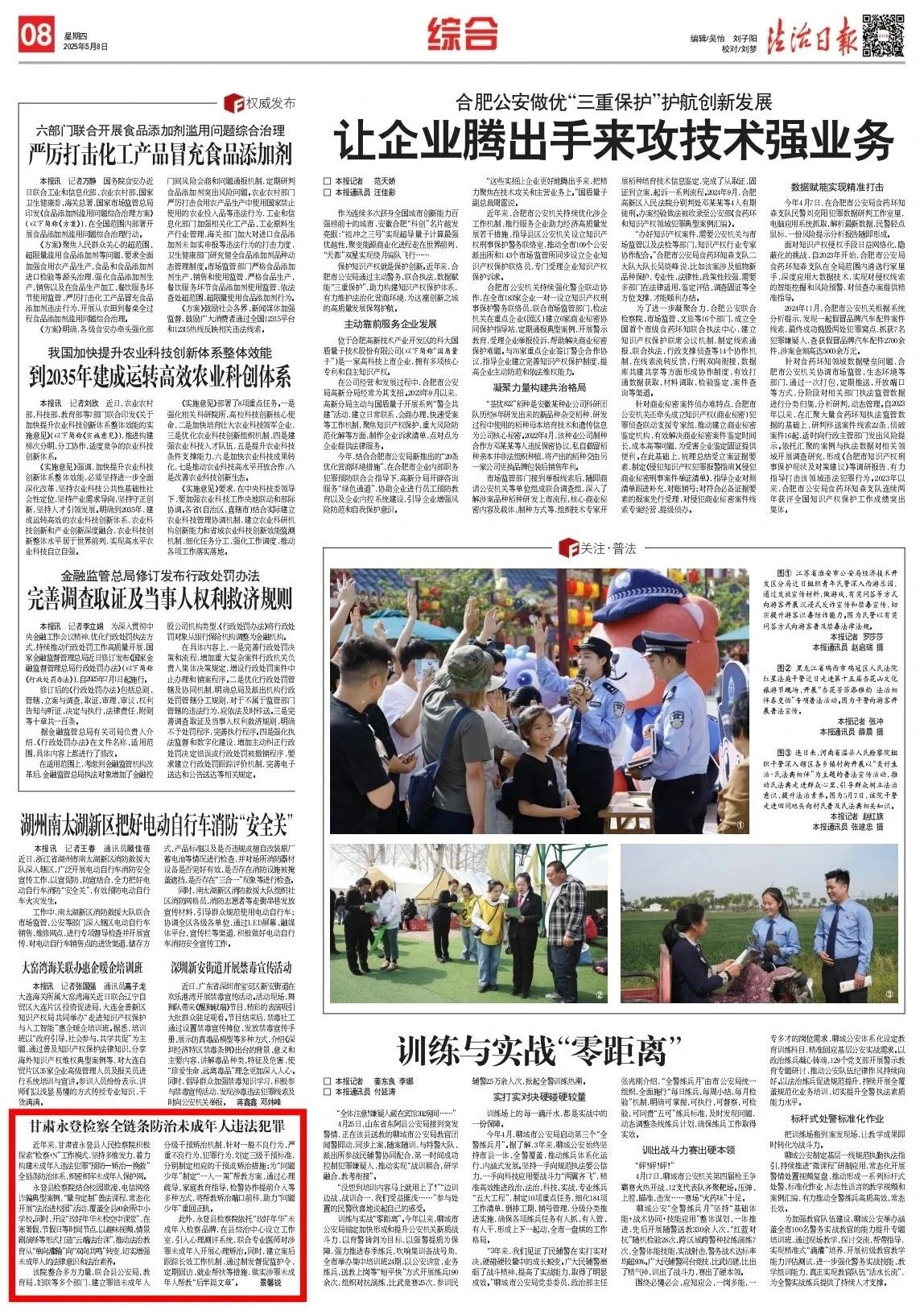 2025年5月8日,法治日报刊发《甘肃永登检察全链条防治未成年人违法犯罪》。