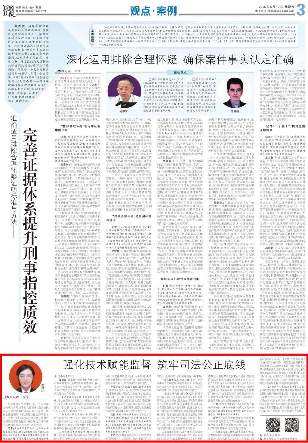 2025年5月10日,检察日报刊发《强化技术赋能监督 筑牢司法公正底线》。