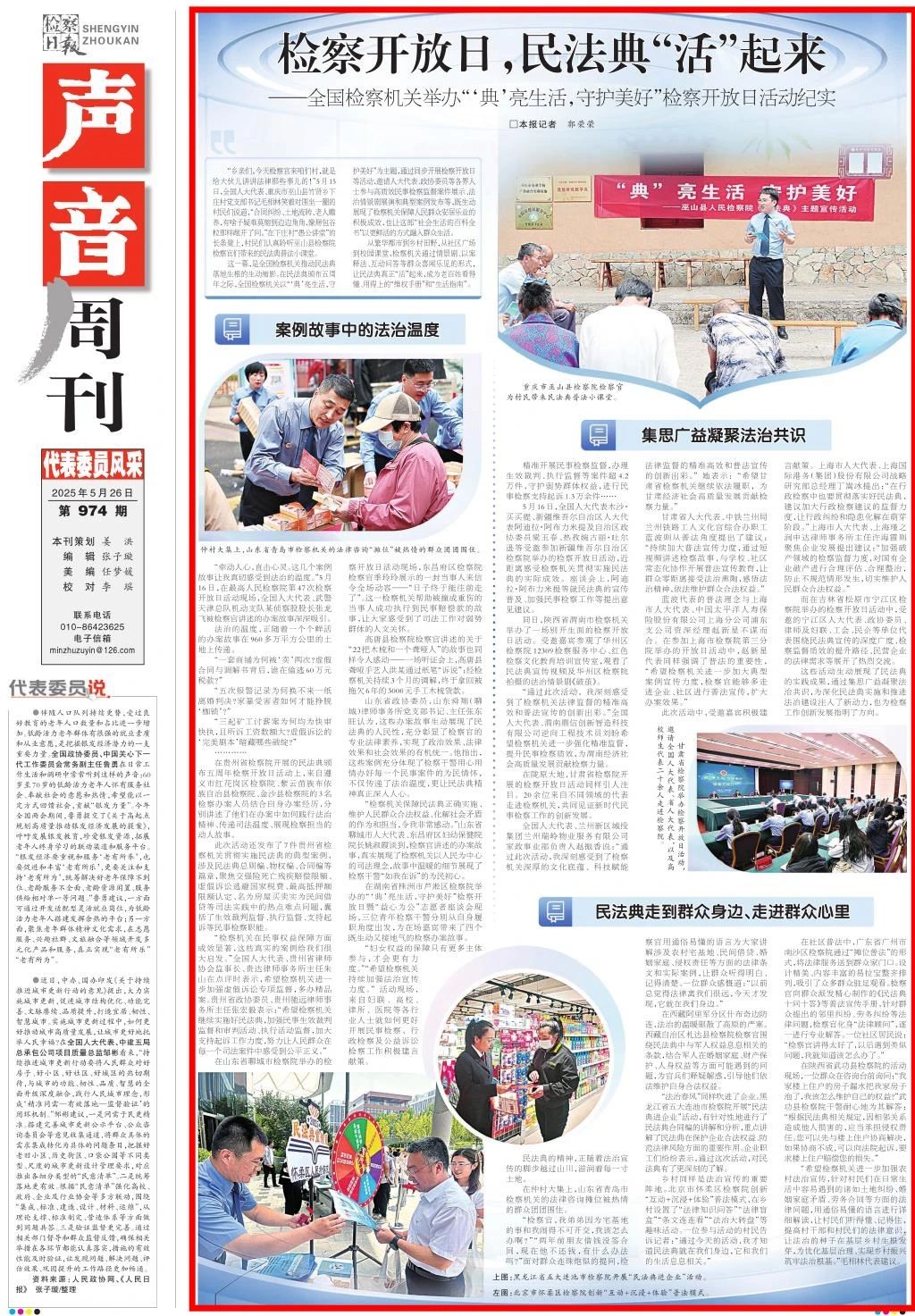2025年5月26日,检察日报声音周刊刊发《检察开放日,民法典“活”起来——全国检察机关举办“‘典’亮生活,守护美好”检察开放日活动纪实》。