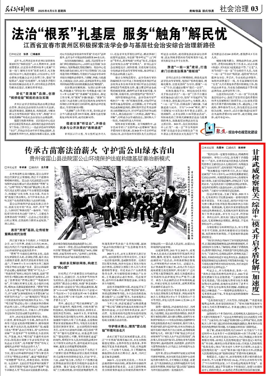 2025年6月5日,民主与法制时报刊发《甘肃武威检察机关“综治+”模式开启矛盾化解“加速度” 》。