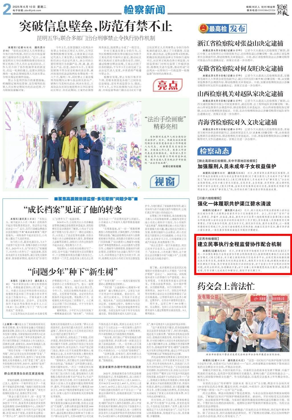 2025年6月10日,检察日报刊发《定西市检察院:建立民事执行全程监督协作配合机制》。