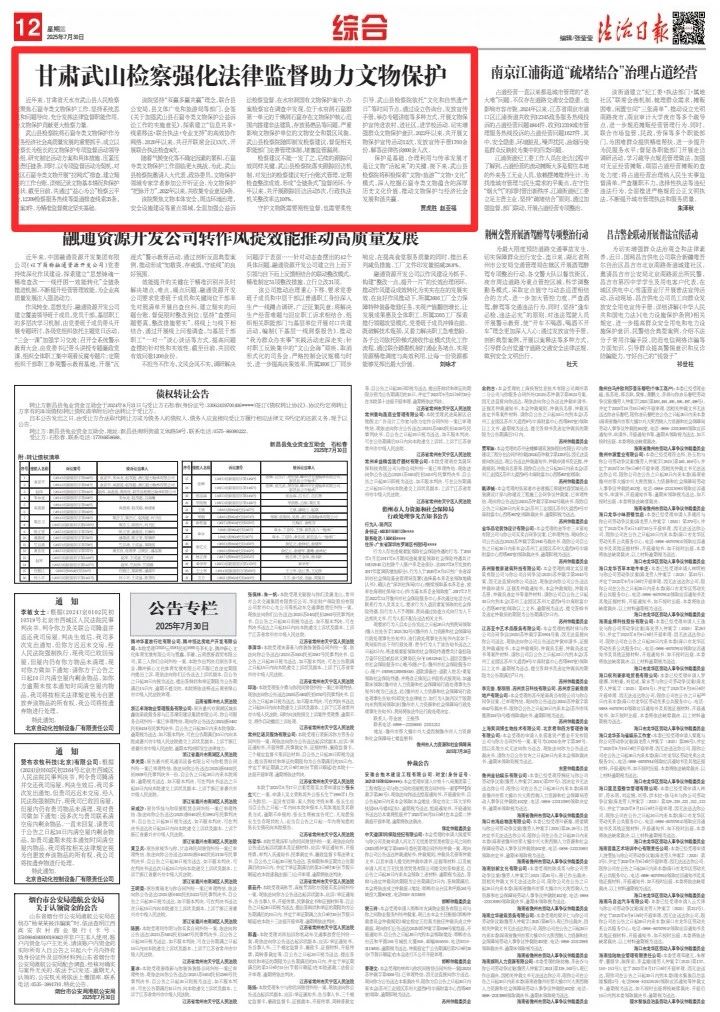 2025年7月30日,法治日报刊发《甘肃武山检察强化法律监督助力文物保护》。