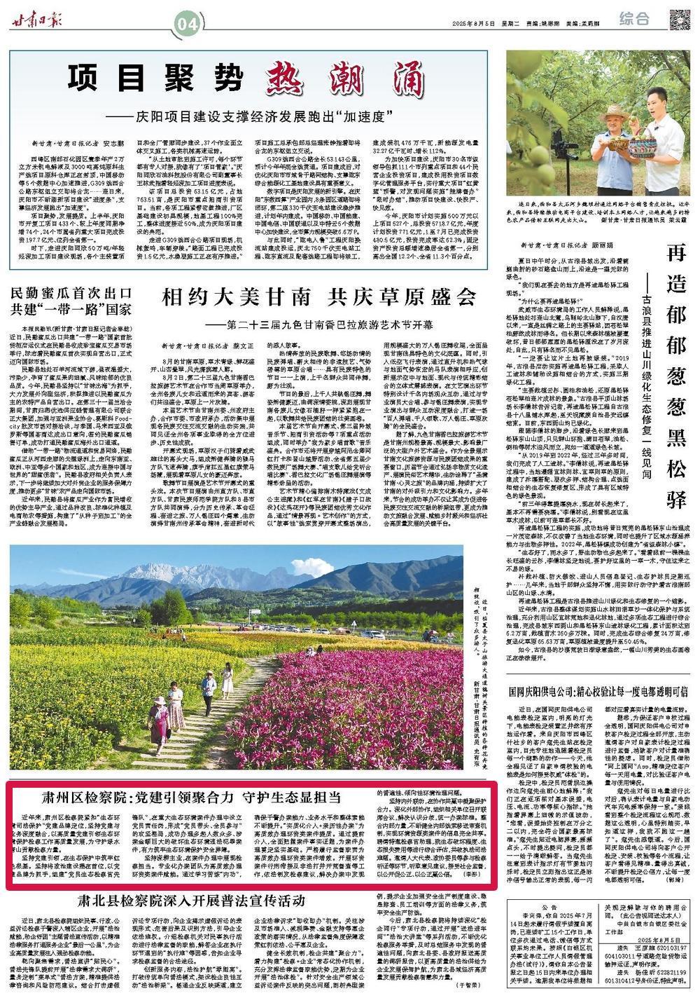 2025年8月5日,甘肃日报刊发《肃州区检察院:党建引领聚合力 守护生态显担当》。