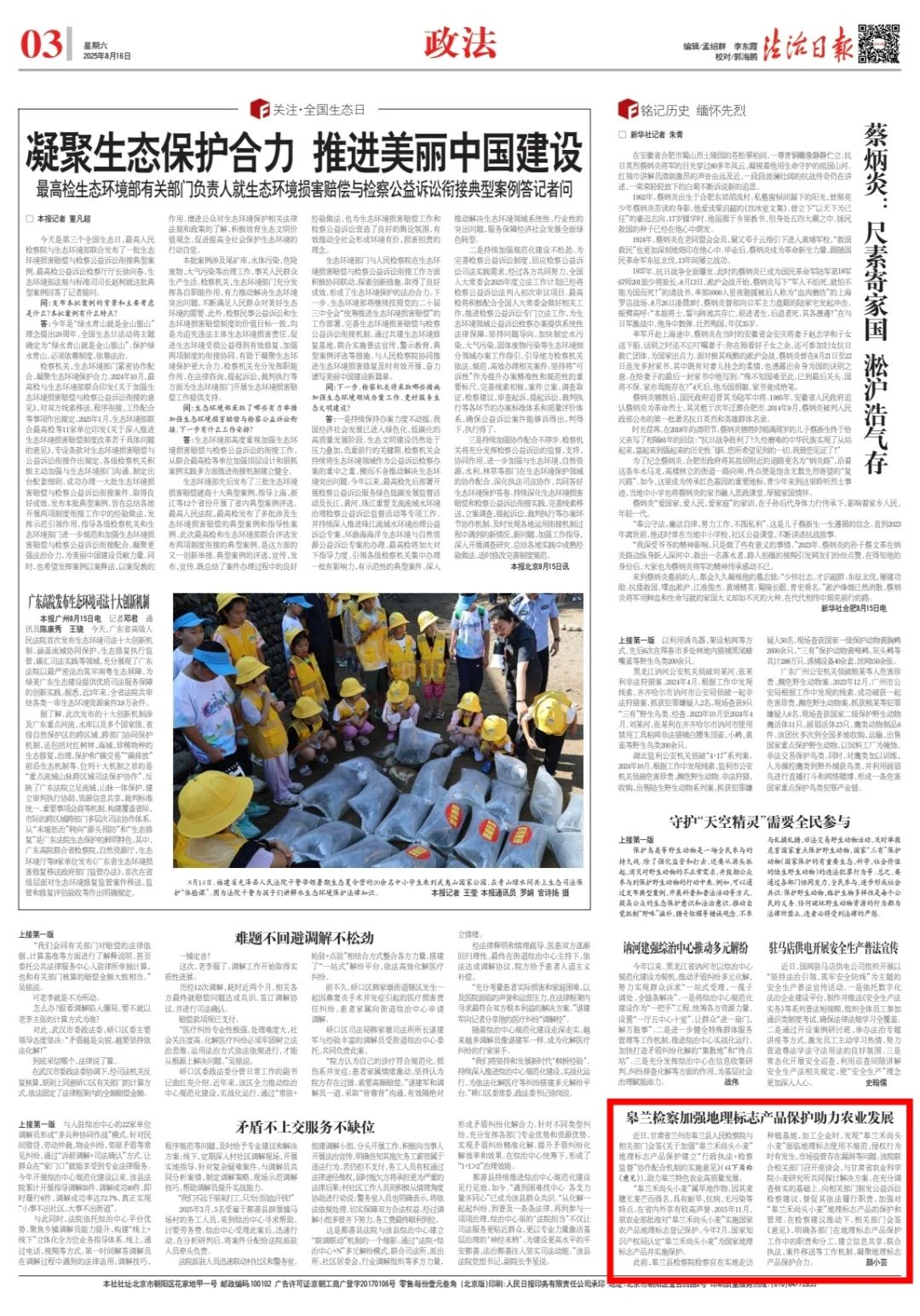 2025年8月16日,法治日报刊发《皋兰检察加强地理标志产品保护助力农业发展》。